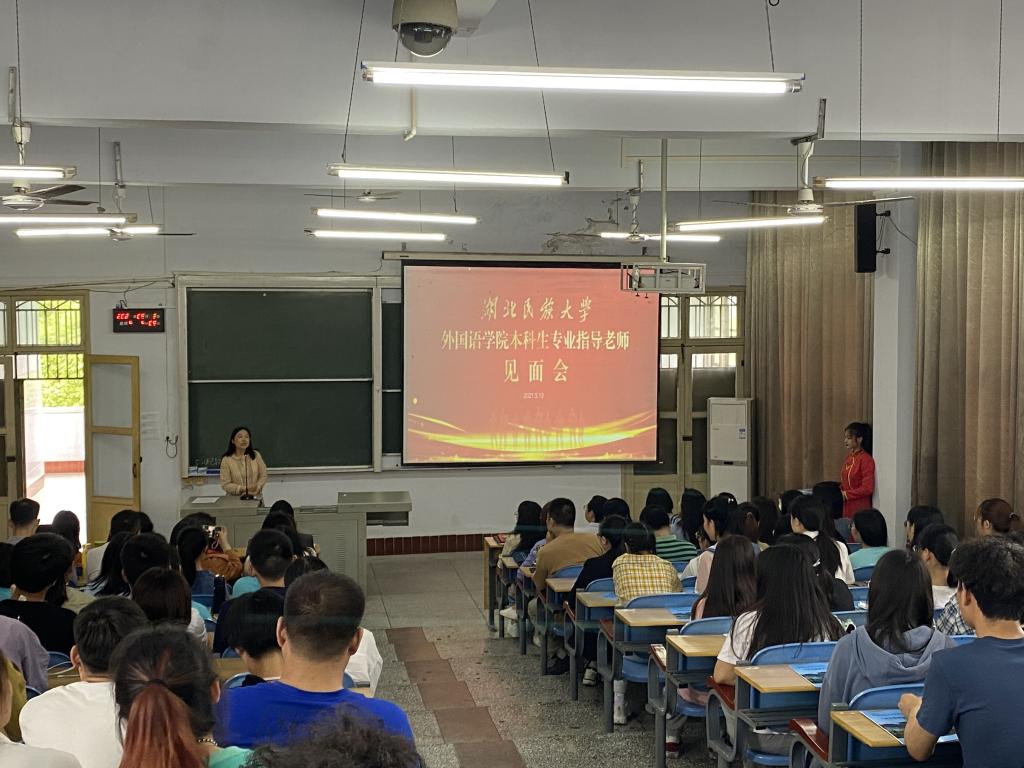 时间:2021-05-14 编辑:学生科 点击:5月13日,外国语学院在文汇楼6401举行了本科生专业导师见面会。本次会议由学生科科长粟登平主持,外国语学院领导班子成员、学生科辅导员、学院全体本科生专业导师及被指导学生参加了此次导师见面会。