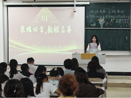 本网讯(记者 郭佳/文 李佳萱/图)4月19日,我院于德智楼9B301教室举行2026年春季学期运动会动员大会。此次大会由我院团委副书记彭阳主持,我院党总支副书记黄晓波、学生党支部书记谢学婧、学生科科长阙嘉苗出席,我院全体运动员、教练员、项目负责人参加。