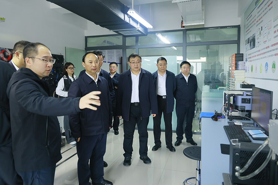 余德芳一行首先来到硒资源研究与生物应用湖北省重点实验室,实地察看实验室建设运行情况,详细了解实验室在硒资源基础研究、技术攻关、成果转化等方面取得的工作进展。