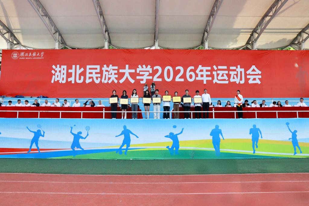 学校党委委员、党委宣传部常务副部长罗翔宇宣布本届运动会宣传工作奖获奖名单。教师教育学院荣获宣传工作一等奖,经济与管理学院、法学院、民族学与社会学学院获二等奖,文学与传媒学院、智能科学与工程学院、马克思主义学院、外国语学院、体育学院获三等奖。