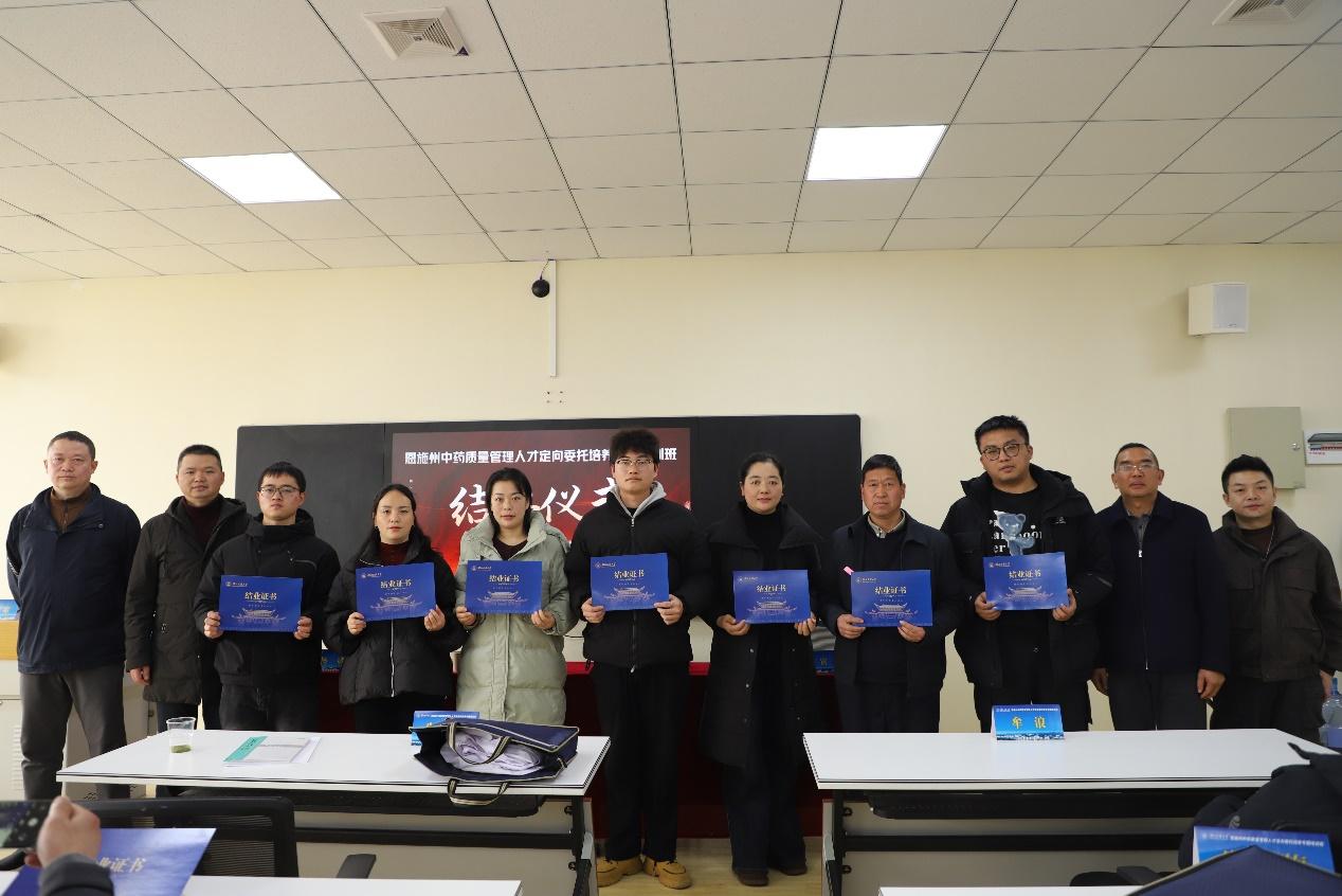 1月16日,恩施州中药质量管理人才定向委托培养专题培训班在365电子娱乐官方网站举行结业仪式。来自全州中药生产、经营、使用、监管及科研一线的35名业务骨干,经过为期10天的系统培训后重返岗位。