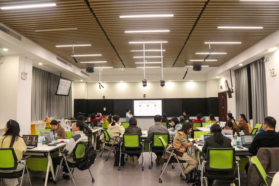 为积极响应国家教育数字化战略行动,深入推动人工智能技术与教育教学的深度融合,探索未来教育新形态,11月6日,学校在修远楼5A702教室举行以“AI Agent智能体开发”为核心的数智赋能教学转型专题工作坊。本次工作坊特邀国内AIGC领域知名专家、秋叶集团金牌讲师郑远霞担任主讲,活动采用了线下工作坊与线上同步直播相结合的方式,共吸引全校194名教师参与活动。活动由教学质量评价中心、教师发展中心主任谢坤武主持。