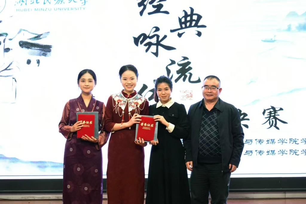 11月1日,文学与传媒学院在文传演播厅举办以“学脉流淌求实情,诵读闪亮家国心”为主题的经典咏流传朗诵歌咏大赛决赛,文学与传媒学院副教授范生彪、吴龙胜,学生科教师穆小雪、姜春玲受邀出席并担任评委。颁奖仪式经过初赛的激烈角逐,共有12组选手跻身决赛。选手以诗歌朗诵为主,结合舞蹈、情景演绎、音乐等形式,为观众打造一场视听盛宴。最终,二号选手韩淼森、李拉昂措和十号选手钟明瑶、丁雪琴摘得本次大赛桂冠。《藏羚羊...