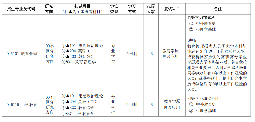 注:1.大学生士兵专项计划拟在法律(法学)、法律(非法学)、体育、电气工程、新闻与传播、会计、学科教学(思政)、学科教学(英语)、教育管理、小学教育专硕专业招生,招生计划包含在公布的拟招人数中,考生报名时请注意查看“中国研究生招生信息网”中的招生专业目录。