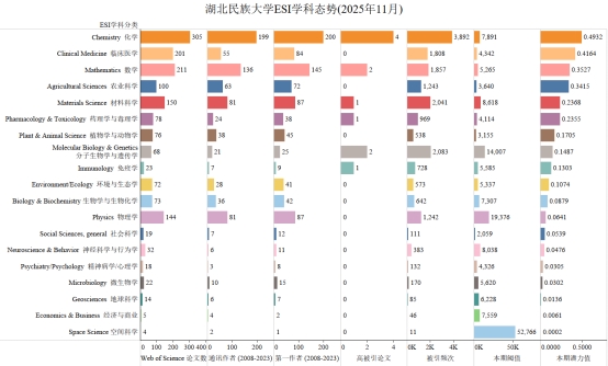 图1我校入围ESI学科前1%学科分布情况-高被引论文(2025年11月)