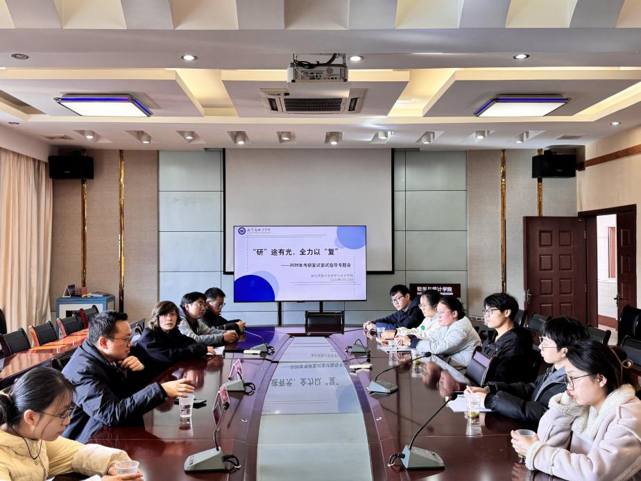 为帮助考研复试学子精准备考、明晰方向,3月20日,数学与统计学院在四楼会议室召开2026年考研复试面试指导专题会。学院党总支书记魏代俊,党总支副书记郑敏,学院副院长向会立参会指导,为考研“最后一公里”保驾护航,进入复试阶段的学生参会。