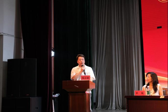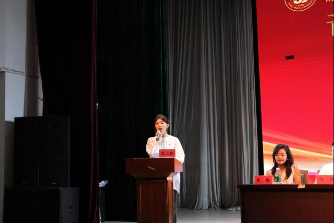 老生代表赵浪莎鼓励新生确定目标、坚持学习、培养能力,锻炼自我,以昂扬向上的精神面貌开始大学生活。