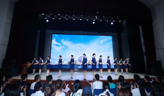 专业展示环节精彩纷呈,充分彰显学院艺术教育的丰硕成果。音乐学专业以合奏《南屏晚钟》拉开帷幕,合奏音韵悠扬,尽显专业底蕴;舞蹈学专业作品《卡普》以灵动舞姿和饱满情感,诠释了舞蹈艺术的独特魅力;航空服务艺术与管理专业则通过节目《云端礼遇》,将职业仪态、礼仪风范与茶艺表演融为一体,生动呈现专业特色,引来全场阵阵掌声。