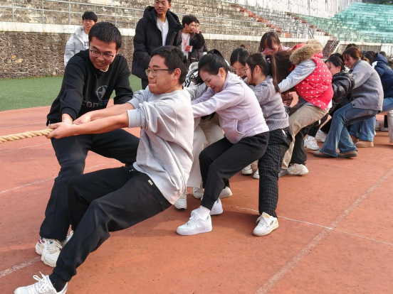 本次活动设置“两人三足”“同心击鼓挑战”“迎面接力跑”“拔河比赛”“零食大作战”五项兼具趣味性与协作性的竞技项目。赛场上,“友谊第一,比赛第二”的信念深植每位同学心中,各班班主任全程参与游戏环节,与学生默契配合、畅快交流。拔河比赛、迎面接力跑环节,每班均派出4名男生与14名女生组队参赛;两人三足项目每班10组队员分成两队接力比拼;同心击鼓挑战由向驰分别指导三个班级训练;零食大作战环节,各班班主任进入指定区域抓取零食,同学们在场外呐喊助威,现场气氛热烈高涨。紧张的竞技与爽朗的笑声交织,不仅让学生的学习压力烟消云散,更充分展现了班级的集体荣誉感与高效协作力。