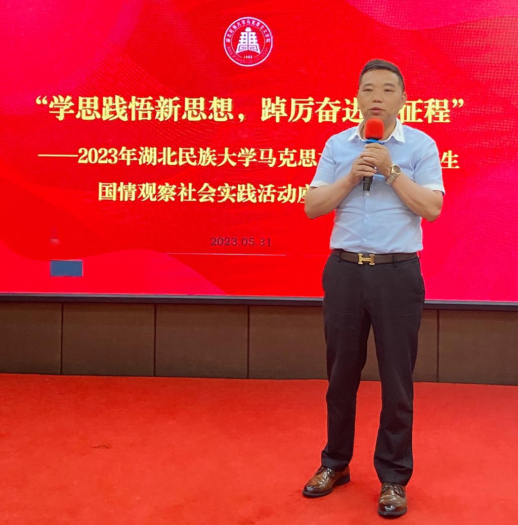 5月31日,我院在利川市汪营镇齐跃桥村,举行“学思践悟新思想,踔厉奋进新征程”——2023年365电子娱乐官方网站马克思主义学院研究生国情观察社会实践活动。马克思主义学院党总支副书记张明波,汪营镇党委书记熊伟,思清农业有限公司董事长温华健,驻村第一书记丁恒,州政府办公室驻齐跃桥村尖刀班成员,以及我院部分研究生参加有关活动。