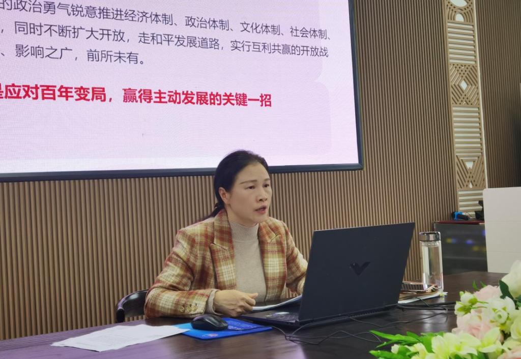 她强调:努力践行党的二十届三中全会精神,就必须要学用结合、坚持问题导向、加强自身建设、强化责任担当、注重团结协作,将全会精神有机融入日常管理工作、专业课程教学、学生思政引领等活动当中,真正做到学深悟透、知行合一。