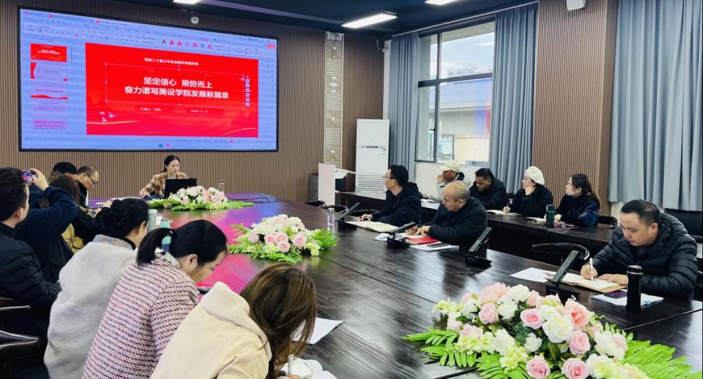 为深入学习宣传贯彻党的二十届三中全会精神,引导我院广大党员深刻领会全会精神的重大意义,坚定不移用全会精神统一思想、引领方向、指导行动。11月21日下午,学院党总支书记田英在12B501会议室为学院全体党员作了题为“坚定信心、乘势而上——奋力谱写美术与设计学院发展新篇章”的专题辅导报告,报告会由总支副书记向贤海主持。