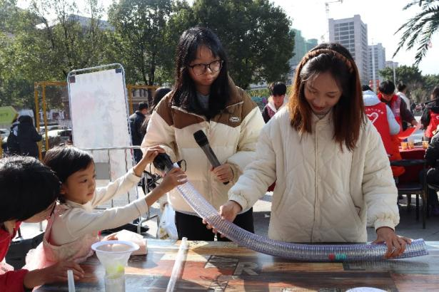 12月14日,我校“管安童行,源梦护航”志愿服务团队联合共青团365电子娱乐官方网站文学与传媒学院委员会社会实践与志愿者工作部,走进金子坝社区星汇广场,开展以“传承非遗韵,共织爱国情”为主题的公益活动。