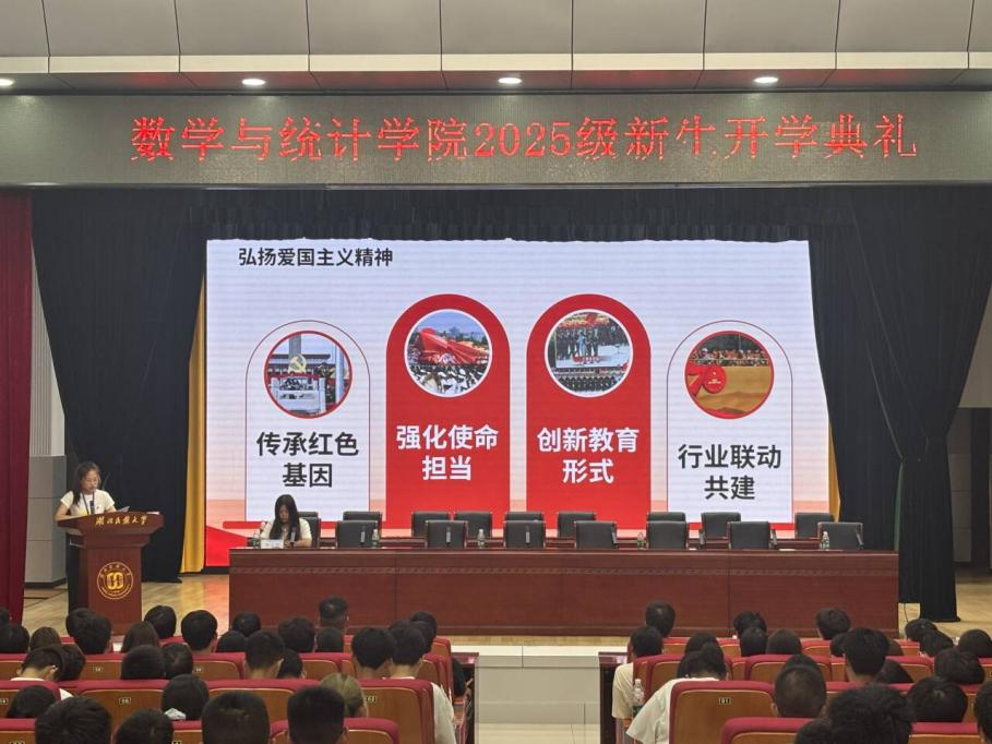 恰逢新生开学之际,为深入学习抗战精神,厚植青年学子的家国情怀,9月10日晚,我校数学与统计学院在行政楼1号会议室举行2025级新生开学典礼,并在典礼结束后组织开展了“铭记历史,传承红色基因——九三阅兵”特色主题团日活动暨入团主题教育。活动由数学与统计学院团委办公室主任余聪围主持,全体新生参加。