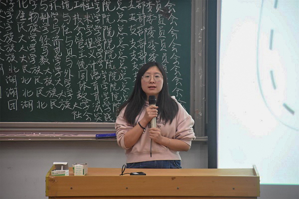 随后,恩施市毕兹卡社会工作服务中心总干事郭锐老师以“彩虹行动”、“爱满荆楚”、“留守儿童阅读助成长”三个具体的项目案例揭示志愿者在社会中所需承担的责任与志愿服务工作背后所蕴含的意义,并从“优势发挥”、“专业化与规范化”、“品牌打造”三个方面对志愿者们讲述如何做好志愿服务。其中她以“专业化与规范化”为重点,结合自身实例指出专业化的核心要点是分析服务对象的需求,表达对当代大学生积极投身志愿服务活动的殷切希望。随着有奖问答环节的结束,本次十院青年志愿者培训交流大会完满举办成功。
