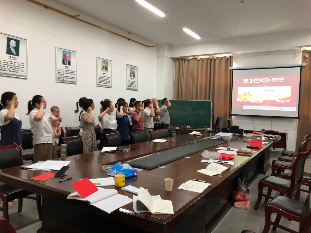 本网讯(通讯员 txc 图 ZW)2021年7月1日,在中国共产党成立100周年之际,我院教工党支部在修远楼5B1205室召开展了以“深入学习习近平总书记在中国共产党成立100周年大会上的讲话精神”为主题的七月支部主题党日活动。