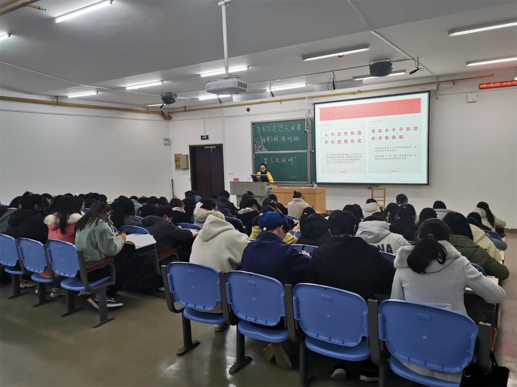 本网讯(见习记者 欧阳洁 郭杰宏/文 余喆 肖欣 杨美琳/图) 为让大学生进一步加强政治修养,增强政治信念,12月10日晚,我院团总支组织纪检部联合美术与设计学院团总支组织纪检部于5A-202学术报告厅举办第一期青年马克思主义者培训班第五次授课活动。我校党委宣传部副部长万力受邀出席并担任本次活动主讲人,第一期青年马克思主义者培训班全体学员参与聆听。