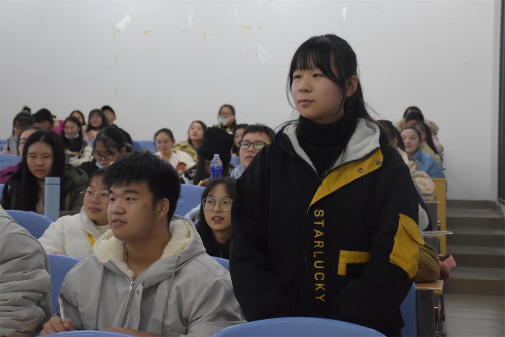 唐老师首先从中华传统的角度诠释“礼”字原义为“敬神”,最早源于对祖先和寺庙神灵的“诚”与“信”。随后,她以身边故事为例,引入“现今社会礼仪就是人与人之间进行交流的‘润滑剂’”,需“好好说话”。接着,她从“自我介绍”、“个人目的”、“礼貌用语”、“表情管理”四个方面强调态度与表情在人际交往之中的重要性,并从语言“表达”与“倾听”两个角度结合具体事例讲述如何做到知礼守礼,如何通过互相尊重来实现人际交往的良性循环。活动最后,她强调人在社会生存其实是对社会角色的一种扮演,讲文明懂礼仪,遵守规律才能适应社会的变化与发展。