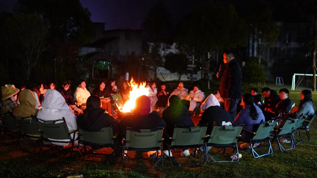 为丰富田野调查内容,团队于12月7日晚在莲花池村乡村新业态经济——“燊和自然之家”开展篝火晚会,并邀请我院大三同学为此次调研团队进行分享交流,同学们从自身写作经验和如何发掘问题,以及如何突出调查报告中的亮点进行分享,为初次参与田野调查的成员们在成果转化方面提供了宝贵意见。