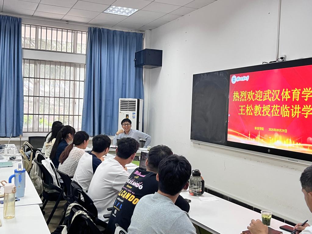 为营造浓厚学术氛围,提升师生科研创新能力,2025年9月29日,武汉体育学院王松教授应邀莅临我院,先后与学院研究生和教师进行了两场学术交流活动。