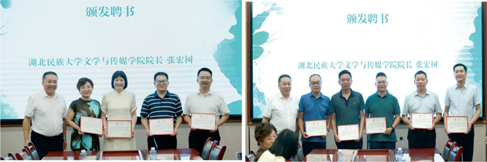 会议由文学与传媒学院党委书记张刚主持。院长张宏树教授在热情洋溢的欢迎辞中,高度肯定了各位名师长期以来对学院发展的鼎力支持。他明确提出未来深化合作的战略构想,强调将围绕师范教育模式革新、校地校际协同育人以及学科教学(语文)专业硕士培养三大核心领域,与地方政府及中学开展更为紧密的深度合作。会上,张宏树院长郑重向童海波、向贤琼、冯军、陈劲松、吴绪海、颜进、伍友华、吴京华、尹文学、李蓓蓓十位专家颁发聘书,正式聘请他们担任学院兼职教师。