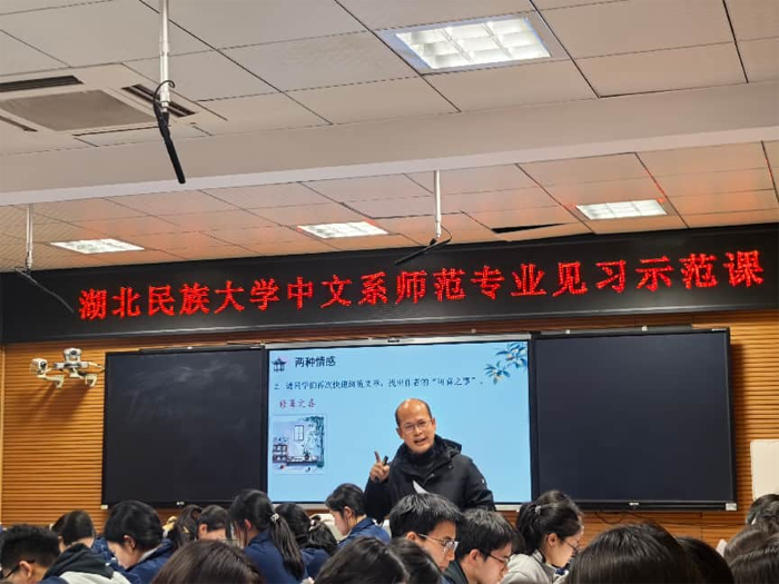 本网讯(通讯员 郑泽红 宋俊宏 梁三姗)为深化师范生对中学语文教学实践的认知,锤炼教育教学核心素养,2026年3月19日下午,文学与传媒学院中文系组织2023级汉语言文学专业近200名学生,分赴恩施市第一中学、恩施市小渡船中学、恩施市舞阳中学三所优质中学,开展了一场沉浸式教育见习活动。本次活动由中文系主任、专业负责人郑泽红带队,副主任宋俊宏及专任教师阳萍、梁三姗、陈梦熊共同参与全程指导,为学子搭建了理论联系实际的优质平台。
