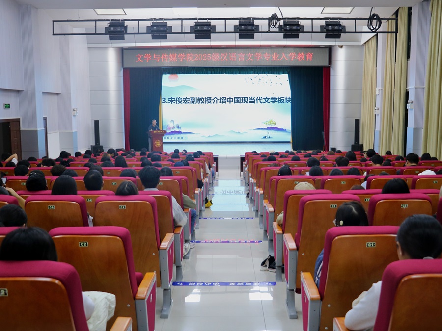 本网讯(记者 何思仪 曹登霄(见习)张薇(见习)/文 阎裕如 文诗涵 郭蕊茜(见习)/图)为助力新生深入了解专业内涵,明确发展方向,9月25日,我院于行政楼一号会议室开展了汉语言文学专业2025级新生入学专业认知教育活动。我院中文系主任、汉语言文学专业负责人、副教授陈云豪,副主任、大学国文教学部负责人、副教授宋俊宏,副教授范生彪、副教授陈梦熊出席活动并担任主讲人。全体2025级汉语言文学专业新生参与本次活动。