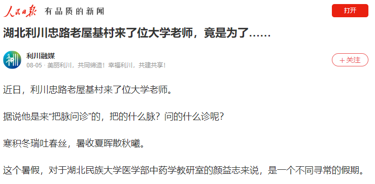 人民日报:暑假,颜益志老师将课堂搬到深山药材地里