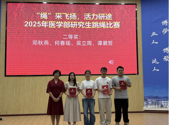 迎新文艺晚会开始前,首先进行了“绳”采飞扬,活力研途—2025年医学部研究生跳绳比赛”的颁奖仪式,陈思颖,王东旭等12名同学分获一二三等奖。