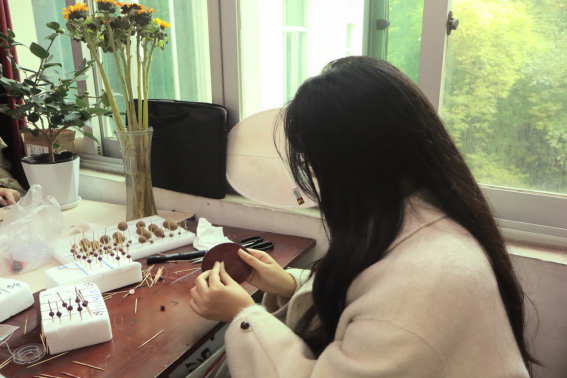 学生利用已加工成型的物料在“心之桥”协会办公室继续进行手工制作,完成香珠的串珠、塑形等工序。活动最后,两个协会成员对所有作品进行综合评比,并在公众号上投票评选出优秀作品。