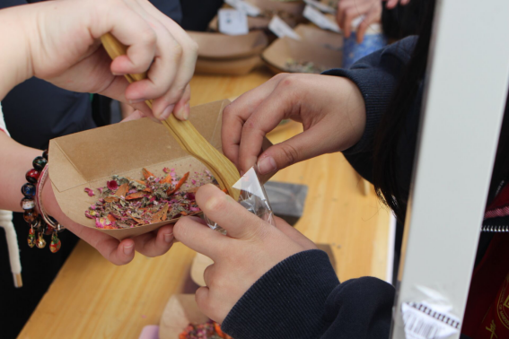 活动现场,草药清芬与手作暖意交织弥漫。佩兰、茉莉等多味中草药整齐排列,供同学们自由挑选与搭配。大家可以依据自身对香气、功效的偏好,自主选材配比,亲手完成从挑选、称量、研磨到装囊、收口的完整制作流程。
