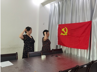 图:审计处支部书记审计处处长李学恩同志带领预备党员田琴同志庄严宣誓