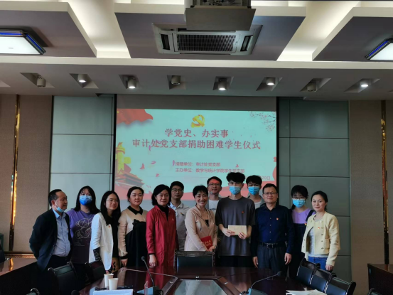 2022年5月20日,审计处支部到数学与统计学院与本科生支部一起举办主题党日活动暨结对助学仪式。