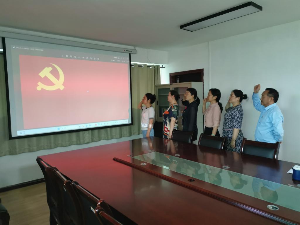 面对鲜红的党旗,全体党员高举右拳重温入党誓词,“我志愿加入中国共产党,拥护党的纲领,....”共同回忆入党时的初心和使命。铿锵有力的誓言,钢铁般的承诺,铸就对党的绝对忠诚。
