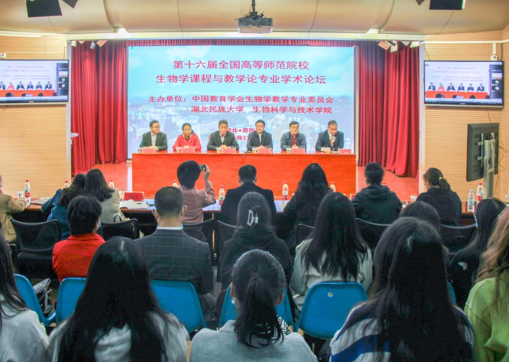 本网讯(通讯员 李元利/文 韦雨欣/图)为提升教学质量,助力人才培养,10月23日上午,由中国教育学会生物学教学专业委员会和我院共同主办的第十六届全国高等师范院校生物学课程与教学论专业研讨会采用线上线下相结合的方式,在文传演播厅成功举办。我校党委副书记邓磊教授,中国教育学会生物学教学专业委员会理事长、北京师范大学生命科学学院刘恩山教授,副理事长、华中师范大学崔鸿教授,秘书长、南京师范大学解凯彬教授,湖北师范大学生命科学学院侯建军教授、我院院长张驰教授及生物科学专业教师学生等出席了开幕式,线上有几十所高校近500名生物教学的专家学者、生物教育方向的研究生及中学一线教师参加了开幕式及学术研讨。