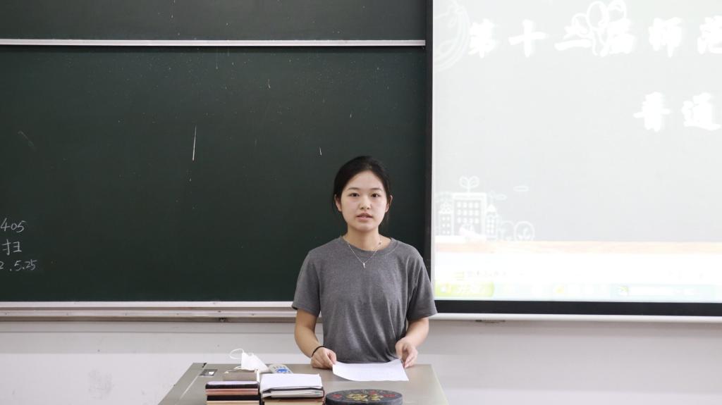 在教学综合技能赛道中,参赛选手们纷纷展示了其良好的精神风貌、优秀的课件制作能力与规范的板书。8分钟的片段教学体现出选手们专业素养和丰富的知识储备,三分钟的即兴演讲则考察选手的临场发挥能力,选手们从容不迫的回答也赢得了评委老师的一致称赞。其中,选手农大盟在比赛结束后说到:“很多时候心里想到的说出来就容易表达不清楚,需要我们多练习才能做到嘴随心动。”
