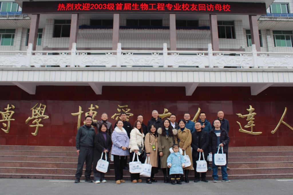 并对学院发展提出宝贵建议,表示继续关注和支持我院发展,积极搭桥,为学院发展贡献力量,相信在全校师生和校友共同努力下,我院生物工程专业将不断创造新辉煌。会议结束,校友们在我院门口合影留念。