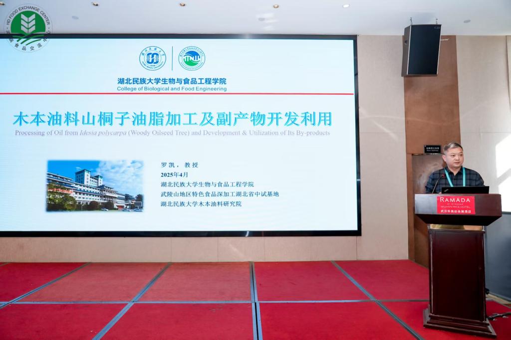 罗教授围绕“木本油料山桐子油脂加工及副产物开发利用”主题,介绍了山桐子油脂的提取工艺、精炼技术及其质量控制的关键环节,揭示了山桐子油脂的生物学活性和健康功效,探讨了其作为功能性配料添加到食品中应用潜力;此外,罗教授还提出了山桐子饼粕蛋白的综合利用方案,展示了将提取过程中产生的废料转化为有用资源的有效途径。该创新性技术不仅可以提升山桐子油脂的经济价值,还可以为其它食品资源的开发利用提供新的思路。