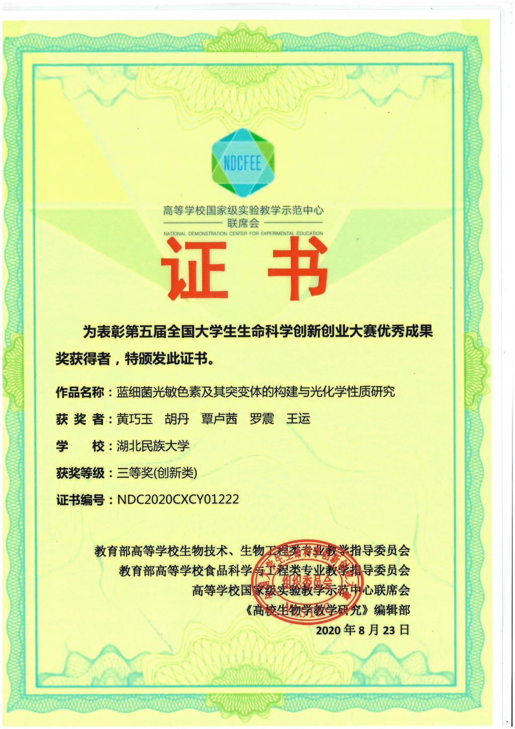 由教育部高等学校生物技术、生物工程类专业教学指导委员会,教育部高等学校食品科学与工程类专业教学指导委员会,高等学校国家级实验教学示范中心联席会,《高校生物学教学研究》编辑部联合主办;由贵州师范大学、贵州省生物化学与分子生物学会联合承办,由全国大学生生命科学创新创业大赛组织委员会组织实施的第五届全国大学生生命科学创新创业大赛于2020年8月23日通过线上答辩方式圆满落幕。