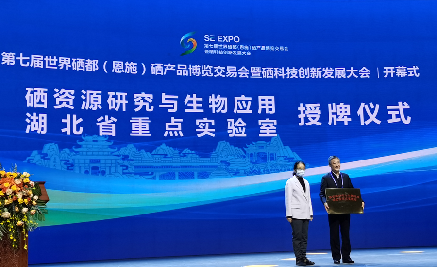 11月18日,在第七届世界硒都(恩施)硒产品博览交易会暨硒科技创新发展大会开幕式上,硒资源研究与生物应用湖北省重点实验室授牌仪式隆重举行。365电子娱乐官方网站校长顿祖义参加授牌仪式,并代表重点实验室牵头单位接受了湖北省科技厅一级巡视员葛琳正式授牌。这标志着我校省级重点实验室数量增加至3个。