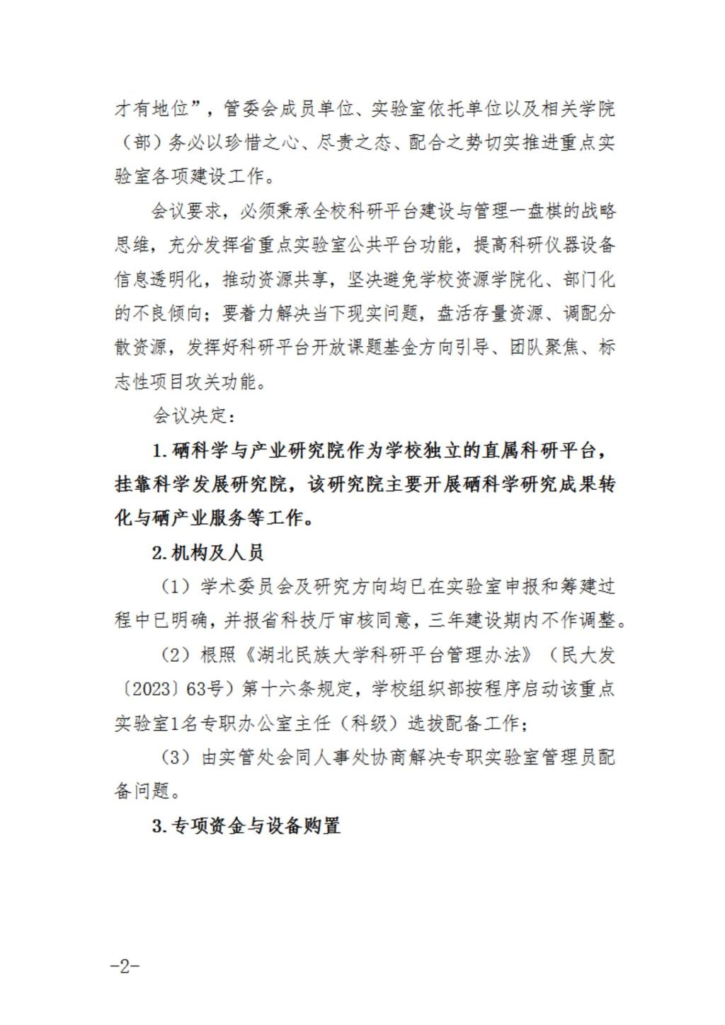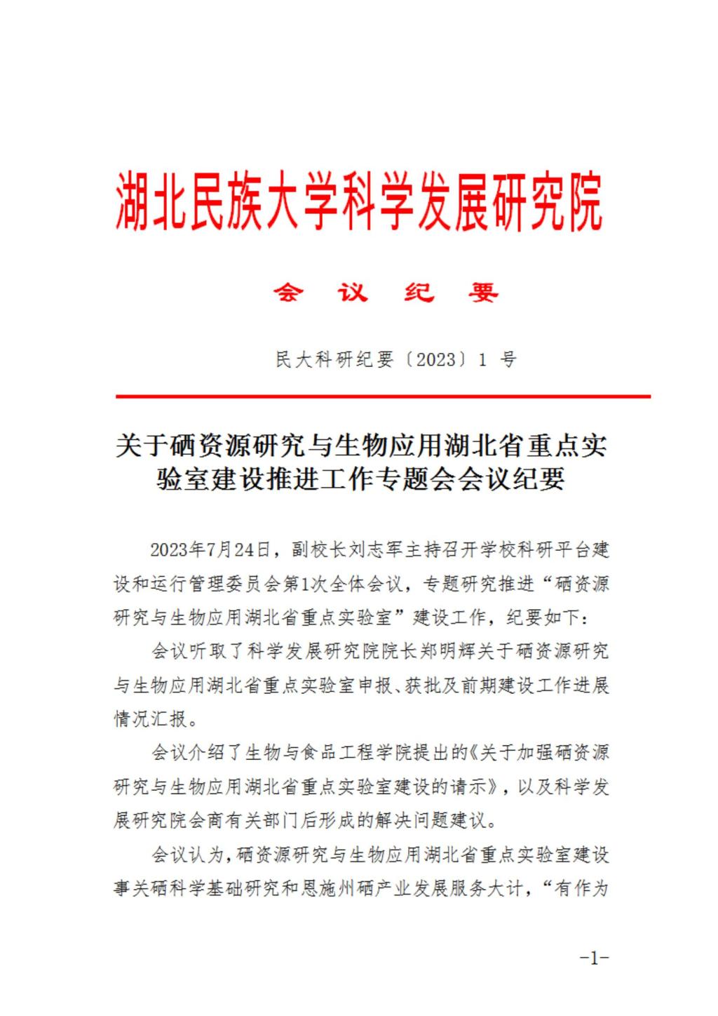 关于硒资源研究与生物应用湖北省重点实验室建设推进工作专题会会议纪要