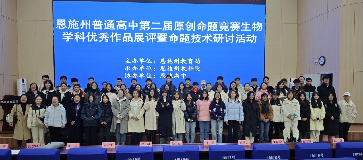 本网讯 12月5日,为促进我院生物科学专业师范生教学技能的提升,生物科学专任教师带领2022级生物科学专业全体学生前往恩施高中参加2024年恩施州普通高中第二届原创命题竞赛生物学科优秀作品展评暨命题技术研讨活动。