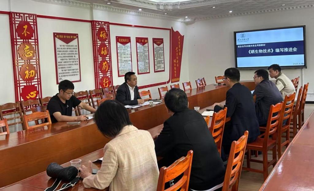 为推进学院硒生物技术研究建设,深化教育教学改革,4月25日上午,校企合作共建共享应用型教材《硒生物技术》编写推进会于生物与食品工程学院二楼会议室进行,会议由学院周毅峰副院长主持。
