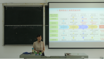 4202教室,食品科学与工程专业由程超老师主讲,学院党总支书记周志、副院长罗凯等一行专业老师到场。程超老师为同学们详细介绍我国食品工业的发展历程和食品科学与工程专业的基本情况。此外,程超老师还介绍现有的办学条件、人才培养质量以及未来就业方向。最后,罗凯副院长深情寄语,鼓励同学们珍惜大学时光,勤奋向前,为自己的未来做好规划。