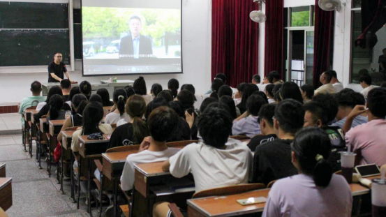 陈杰分别从理想信念教育、廉洁教育、入党主题教育三个主题进行讲授。陈杰首先对我院概况进行介绍,包括管理团队及学生组织,并带领2023级新生观看我院宣传视频。随后,陈杰对入党主题教育进行详细讲解。最后,陈杰希望大家积极向党组织靠拢,坚定理想信念,在大学期间不断提升个人的思想政治素养。