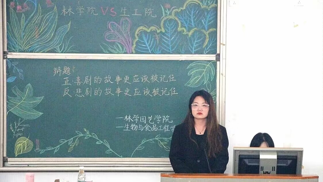 此次比赛围绕“喜剧的故事更应该被记住还是悲剧的故事更应该被记住”展开一场“唇枪舌战”。比赛开始前正反方选手早已摩拳擦掌,气势如虹准备大显身手一番,观众也已早早到场准备聆听思想的碰撞的交响乐。比赛的号角正式奏响,正方以“剧将生活中的美好带给我们,符合我们对生活美好的期待”为论点,反方陈词将“剧让人沉溺,而悲剧使人清醒”作为论点,双方在针对对方的立论时,引经据典,开始了激烈的攻辩。问答过程中双方巧妙设陷,赢得观众掌声不断。在观众互动的环节中,在场的观众热情高涨,积极参与将比赛氛围推向了高潮。比赛渐渐进入尾声,林学与园艺学院优秀辩手苏悦对本次辩论赛进行了精辟的点评。