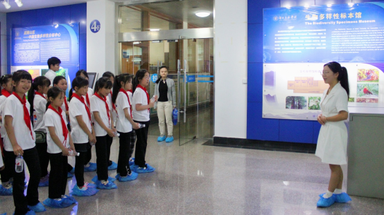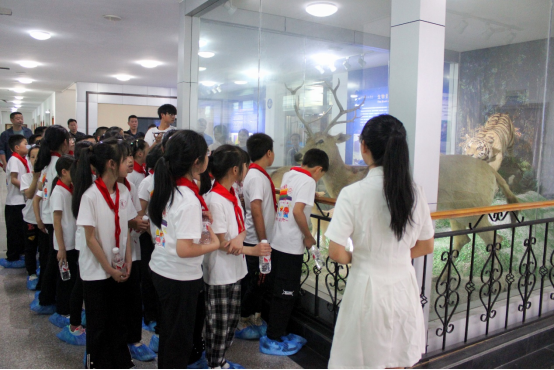 在参观过程中,讲解员张倩、向恩建和夏欣用专业的讲解知识为小学生们提供了一次奇妙的生物探索之旅,让小学生们对生物学有了更加全面的认识。参观现场气氛也十分热烈,时不时有小朋友发出惊叹,有的小朋友们在自己的笔记本上认真做着记录,有的小朋友拿相机把自己喜欢的动植物拍了下来,学习气氛相当浓厚。