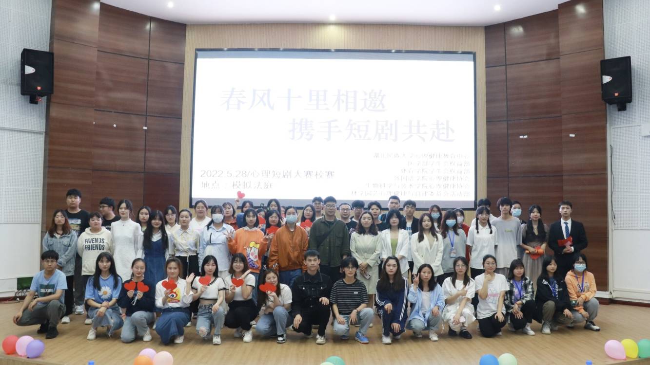 本网讯(通讯员 王圳垚 马明花 方小翠/文 通讯员 黄慧娴/图)为了丰富大学生的业余生活,促进学院文化交流,营造健康活跃的校园生活氛围,5月28日,我院心理健康协会携我校心理健康教育中心、医学部学生会权益部、体育学院学生会权益部、外国语学院心理健康协会和林学园艺学院心理健康与自律委员会活动部在模拟法庭举办“春风十里相邀,携手短剧共赴”心理短剧大赛决赛。我校心理健康教育中心副主任侯燕、医学部团总支书记陈建萍、我院团总支书记陈杰、体育学院团总支书记张弋明、林学园艺学院谢杰兰和外国语学院向冰清担任本次大赛评委。