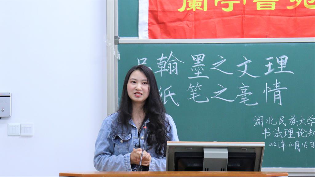 本网讯(通讯员 唐欣新 柯佳译/文 柯佳译/图)10月16日下午,为加强学生对书法的了解,丰富校园文化生活,我校在5A206教室成功举办“品翰墨之文理,挥笔之豪情”为主题的兰亭书苑书法理论知识课堂活动。由清华大学老师田怀若主讲,约300人到场参加。