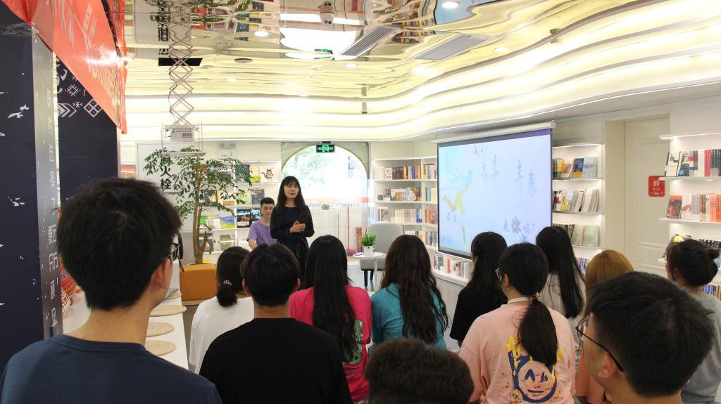 书友会伊始,参会人员于倍阅书店投影仪前集合。主持人侯默宣布开始,并讲解活动流程。紧接着彭弥进行致辞,她谈到活动进行的意义是建立书香校园,从今年4月23日的调查报告显示我校阅读率有一定的提高,并且丰富学生知识储备,支持学习和工作。深讨就如何激发学生阅读兴趣展开自己的想法,并鼓励学生通过途径匹配自己的书友。在各自的阅览室进行交流。随后侯默论前人诸葛亮、匡衡、鲁迅引入今天主题词“青春奋斗”,由工作人员将同一小组人员引导致四个阅览室,并进行分享好书现场答疑。共四位学生进行分享发言,首位书友分享从小到大的阅读体会,她认为读书可以让自身得到思考。再有书友分享大冰的2020年作品《啊2.0》一个个故事很治愈、温暖,他讲述大冰的故事,朝九晚五,在书中说别人的故事,也唱民谣,开酒吧。最后一位书友分享他对诗歌的感悟。他们也谈论到,经过本次探讨,了解不同人的想法,可见贤思齐。经过一系列的分享,大家之间的气氛也融合高涨起来,欢声笑语一片。